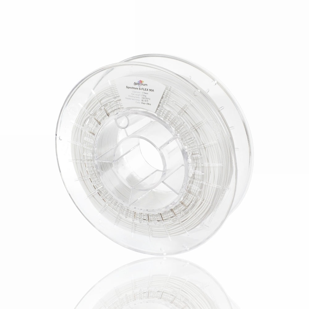 Spectrum S-Flex 90A é um filamento concebido para impressão 3D, o que lhe permite fabricar artigos flexíveis de uma forma muito mais simples do que com outros materiais deste tipo. A composição apropriada do material permite uma boa aderência tanto entre camadas como entre o artigo impresso e a plataforma de construção.