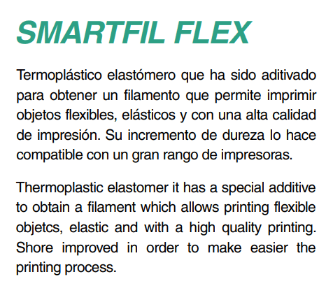 Filamento TPU Smartfil Flex  da marca Smart Materials 3D, de excelente qualidade, para a Impressão 3D. Indicado tanto para utilizadores mais avançados e profissionais como para quem está a começar.