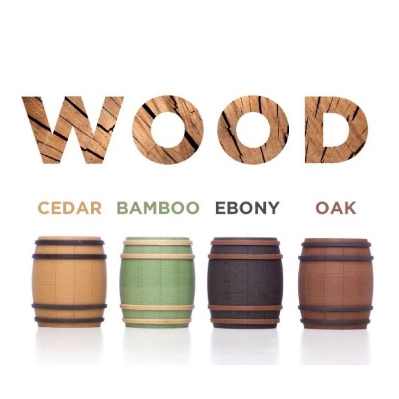 A madeira é um filamento de alta qualidade; tem uma elevada carga de madeira combinada com uma variedade de pigmentos para simular a aparência e o toque da madeira real.