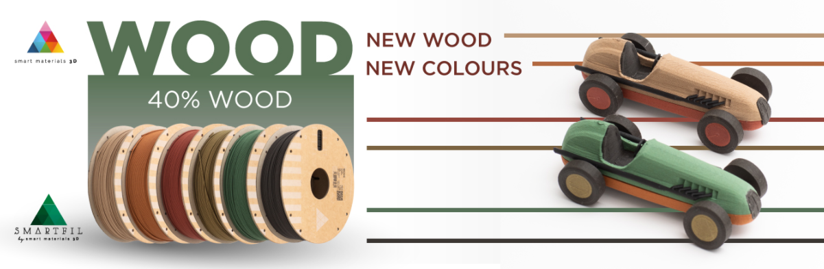 Peças impressas com Madeira Smartfil têm um resultado espectacular, pois parecem ser feitas com madeira real, porque este filamento é feito de 40% de matéria orgânica, tal como a madeira. Durante o processo de impressão, a mesma peça, o tom da cor pode variar se a temperatura for alterada.