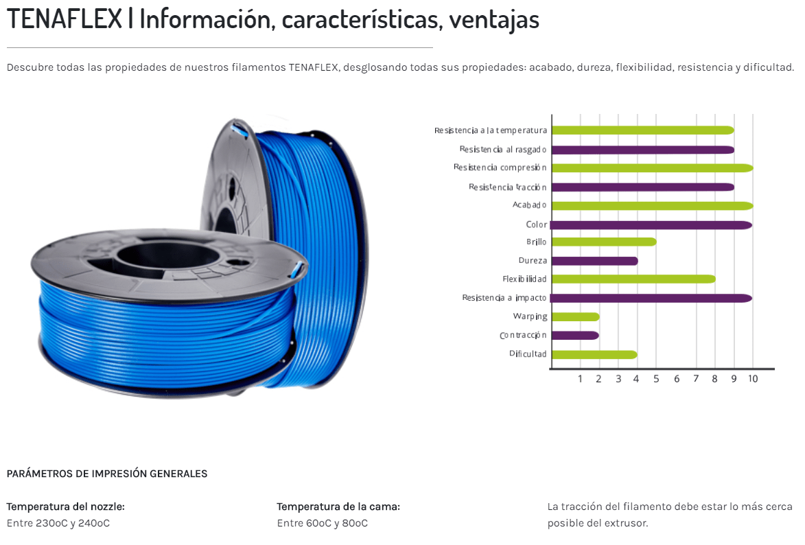 O nosso filamento TPE -TENAFLEX (1,75mm ou 2,85mm) é um filamento fabricado em Espanha para impressoras 3D com tecnologia FFF/FDM.