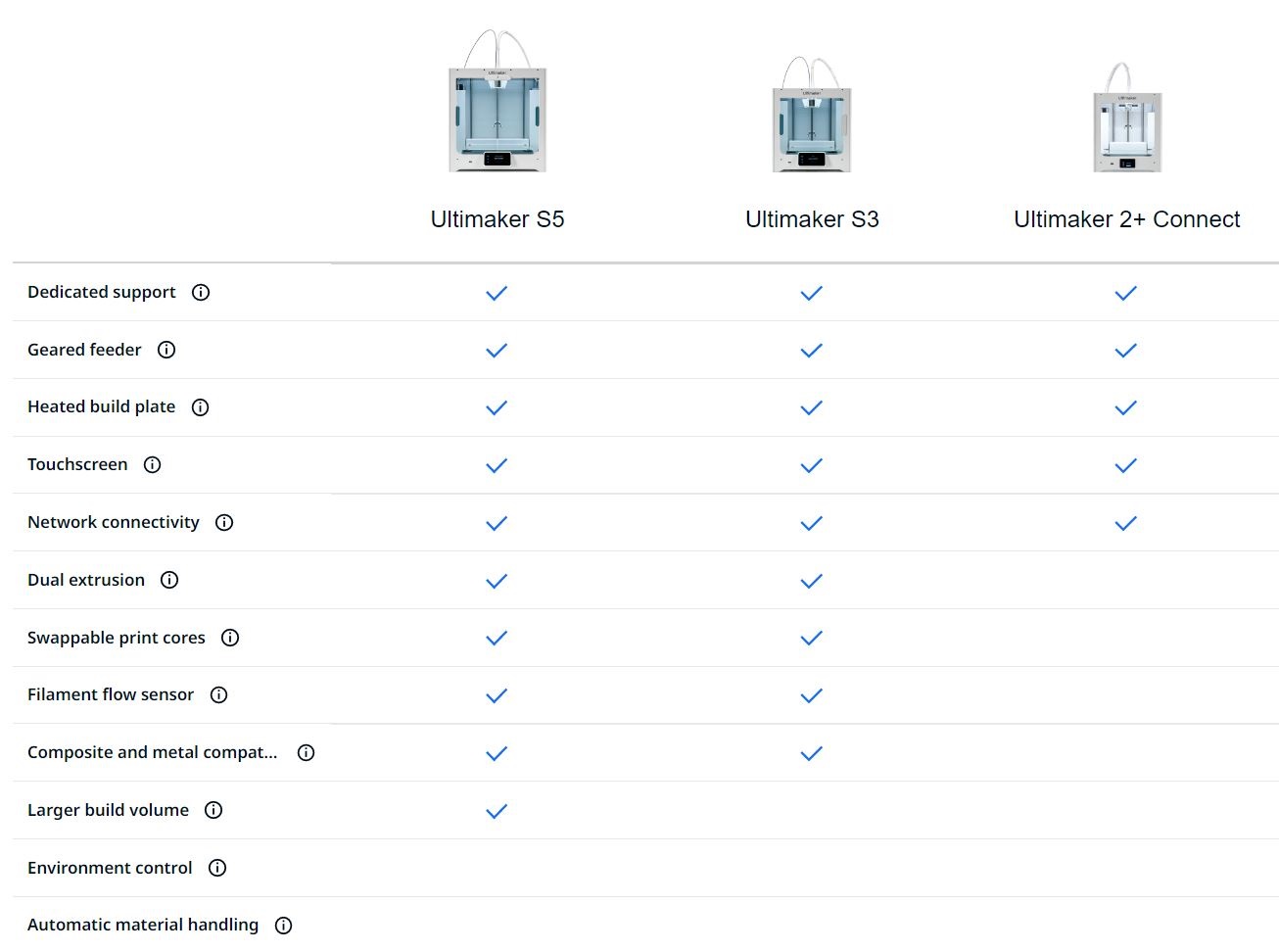 O espaço de instalação e a maior parte da mecânica são idênticos para ambos os modelos. Ambos os dispositivos usam a mesma cabeça de impressão (com algumas alterações visuais) e funcionam como habitualmente com o software Ultimaker Cura. As diferenças podem ser encontradas, por exemplo, com o stick USB do 2+ Connect (o modelo anterior usava cartões SD), com o ecrã táctil em vez do ecrã monocromático e com a alimentação de material revista. Também nova com a 2+ Connect é a funcionalidade de rede, o acesso aos perfis da Material Alliance, a opção de ligar várias impressoras através da rede para formar um “cluster” e com o Air Manager, que está disponível separadamente, também a opção de expandir o espaço de instalação para fechar completamente.