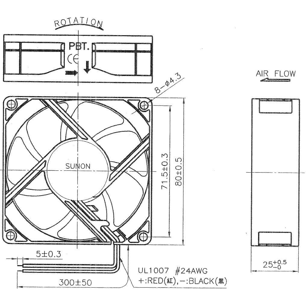 Ventilador Ventoinha FAN 8025 12V 2 fios EF80251S1-1000-A99 ( 80*80*25mm) – SUNON