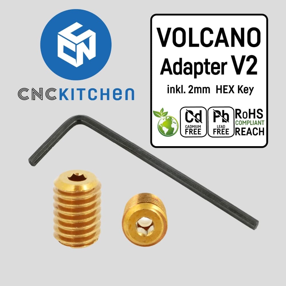 Para que serve? Este adaptador de latão é um verdadeiro jogo de mudança. Permite-te instalar qualquer nozzle V6 de comprimento padrão num bloco aquecedor Volcano. Ele compensa a diferença de 8,5 mm entre os nozzles padrão e os Volcano. Assim, não precisas de ter vários nozzles para os teus diferentes hotends. Todos os nozzles padrão agora também encaixam num bloco aquecedor Volcano.